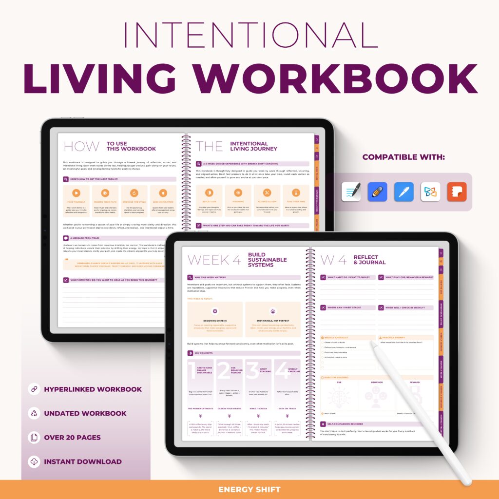 Together, we walk through the Intentional Living Workbook & Planner, using reflection, conversation, and shared insight to help you: